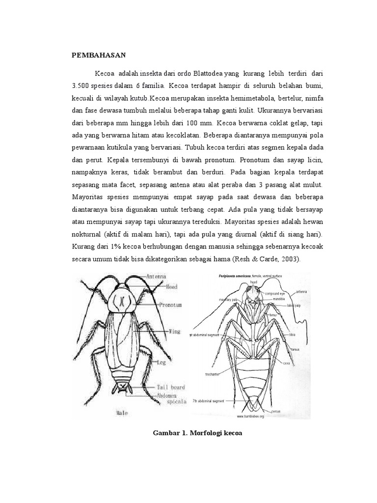 Anatomi kecoa memiliki dua bagian utama seperti. BAB 2 TINJAUAN PUSTAKA 21 Kecoa Kecoa merupakan salah satu jenis serangga yang sering ditemui disekitar lingkungan tempat tingg. Kecoak lipas atau coro adalah salah satu ordo serangga Blattodea hemimetabola yang berasal dari kelas InsectaOrdo ini terdiri dari 4000 spesies 2 superfamili dan 6 familiKecoak terdapat hampir di seluruh belahan bumi kecuali di wilayah kutubKecoak memiliki hubungan dekat dengan belalang sentadu dan rayap Di antara spesies yang paling terkenal adalah kecoak amerika.